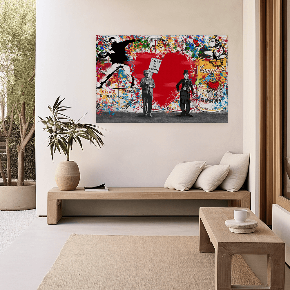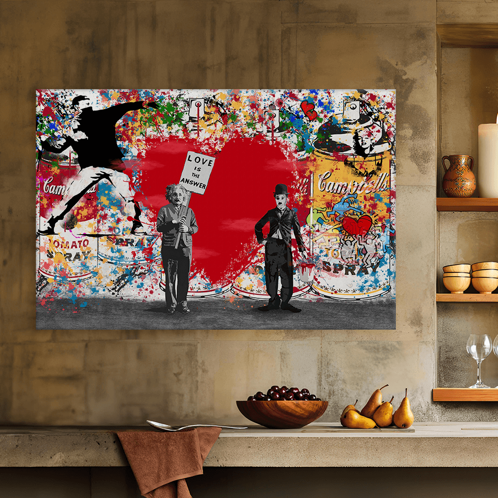 Hol dir Leinwandbild - Albert & Charlie - Follow your Heart / Make love not war - Banksy inspired und bringe urbane Eleganz in dein Zuhause!