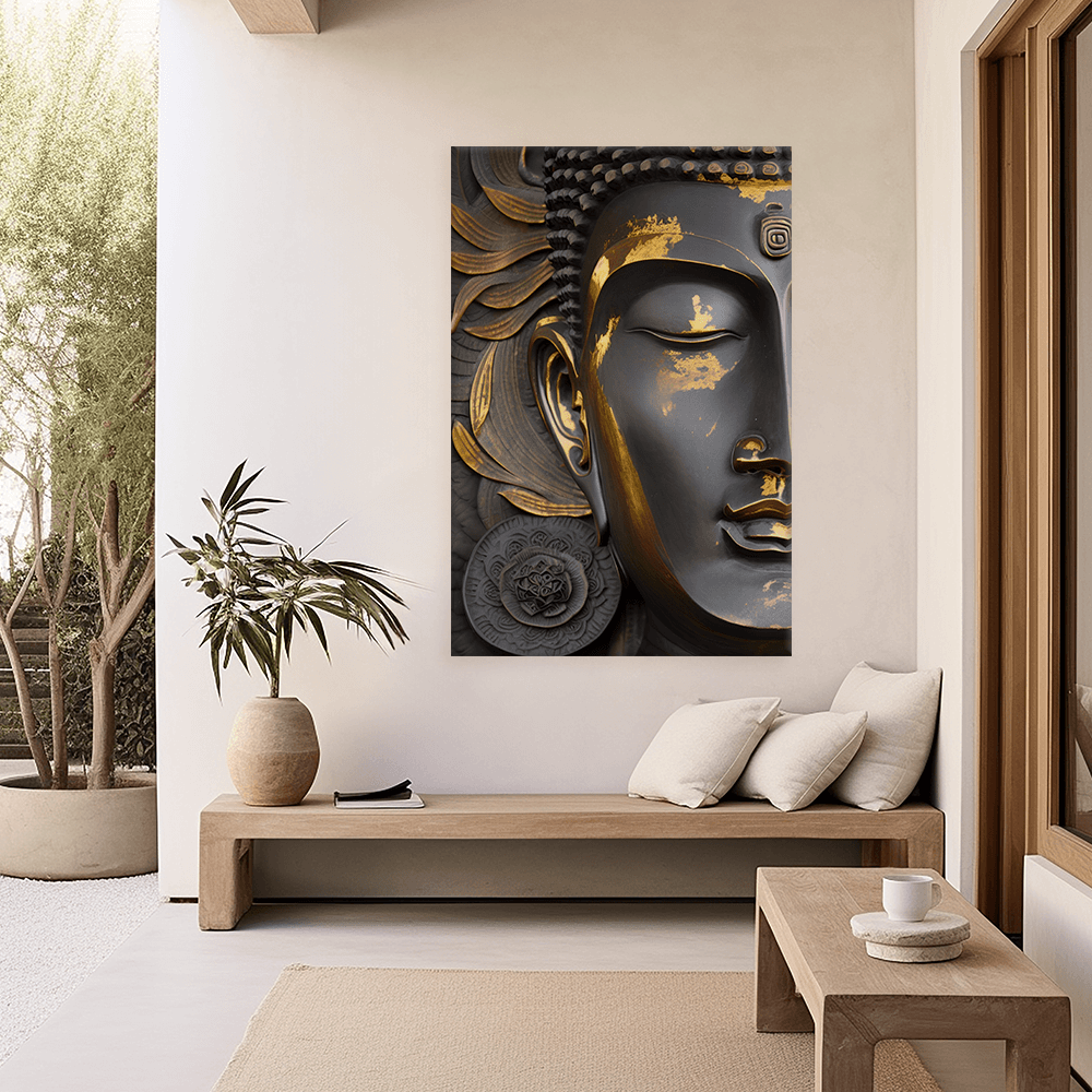 Das Leinwandbild Leinwandbild - Buddha Bingüberzeugt mit matter Oberfläche und wird auf hochwertigem Canvas-Material (260 g/m²) im Eco-Solvent-Druck gefertigt. Der Druck in 1440 dpi sorgt für brillante Details und langlebige Farben mit hoher UV-Beständigkeit. Anschließend wird die Leinwand auf einen 2 cm starken Holzrahmen gespannt, die Ecken professionell umgeschlagen und das Leinwandbild Leinwandbild - Buddha Bing so fertig montiert geliefert – direkt zum Aufhängen ohne weiteres Zubehör.