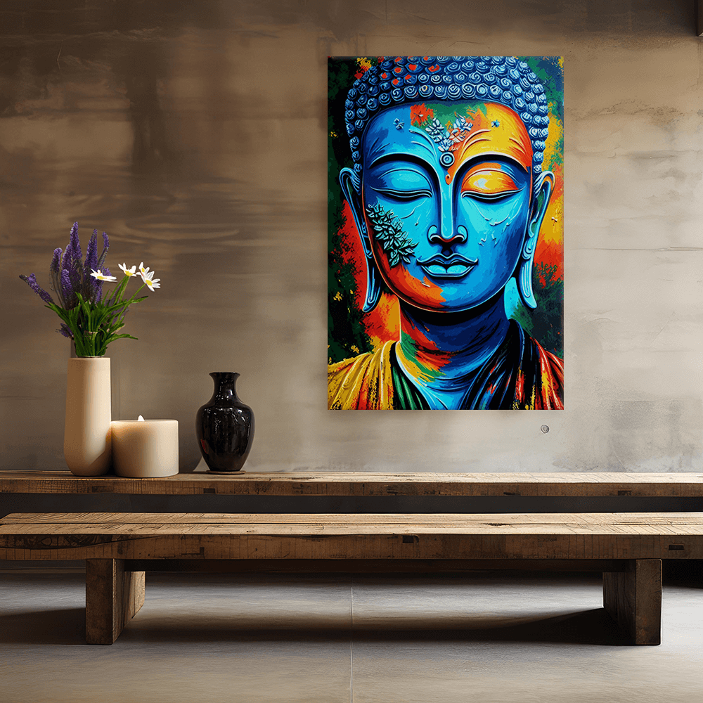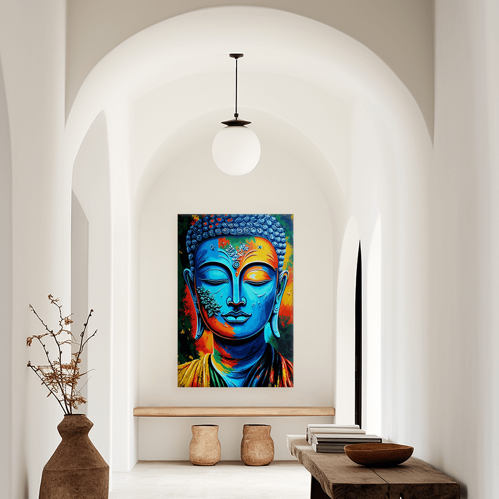 Das Leinwandbild Leinwandbild - Buddha Bluüberzeugt mit matter Oberfläche und wird auf hochwertigem Canvas-Material (260 g/m²) im Eco-Solvent-Druck gefertigt. Der Druck in 1440 dpi sorgt für brillante Details und langlebige Farben mit hoher UV-Beständigkeit. Anschließend wird die Leinwand auf einen 2 cm starken Holzrahmen gespannt, die Ecken professionell umgeschlagen und das Leinwandbild Leinwandbild - Buddha Blu so fertig montiert geliefert – direkt zum Aufhängen ohne weiteres Zubehör.
