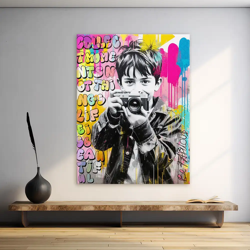 Das Leinwandbild Leinwandbild - Collect Moments Not Things fängt den einzigartigen Stil von Grace-Berlin perfekt ein. Gedruckt mit modernster Technik in 1440 dpi bietet das Kunstwerk eine außergewöhnliche Farbintensität und Bildschärfe. Die UV-beständigen Farben sorgen dafür, dass dein Bild auch bei direkter Lichteinstrahlung dauerhaft strahlt. Das Motiv wird über die Seitenkanten gespiegelt, was einen harmonischen Galerie-Effekt erzeugt und dem Bild eine stilvolle 3D-Wirkung verleiht.