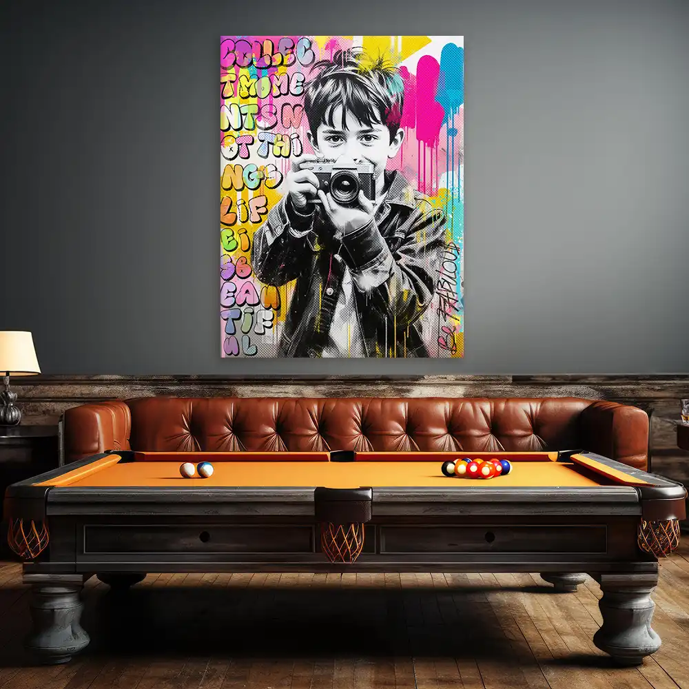 Hol dir moderne Kunst direkt nach Hause mit dem Leinwandbild Leinwandbild - Collect Moments Not Things von Grace-Berlin, exklusiv bei HAMMER WANDBILDER. Dieses Werk überzeugt durch einen brillanten Eco-Solvent-Druck in 1440 dpi auf feinem Canvas mit 260 g/m² Flächengewicht – für lebendige Farben, feine Details und langanhaltende UV-Beständigkeit. Die matte Oberfläche reduziert Reflexionen und bringt die typischen Stilmerkmale von Grace-Berlin besonders gut zur Geltung. Das Leinwandbild wird professionell auf einen 2 cm tiefen Holzrahmen gespannt und kommt komplett fertig montiert zu dir – optional mit passendem Aufhänger-Set.