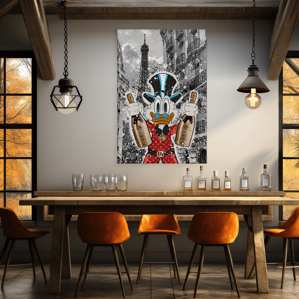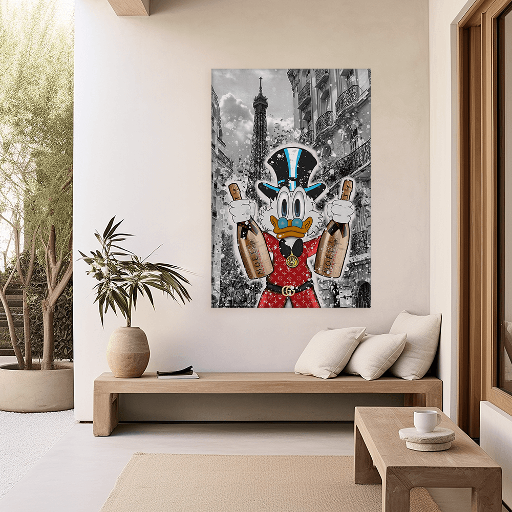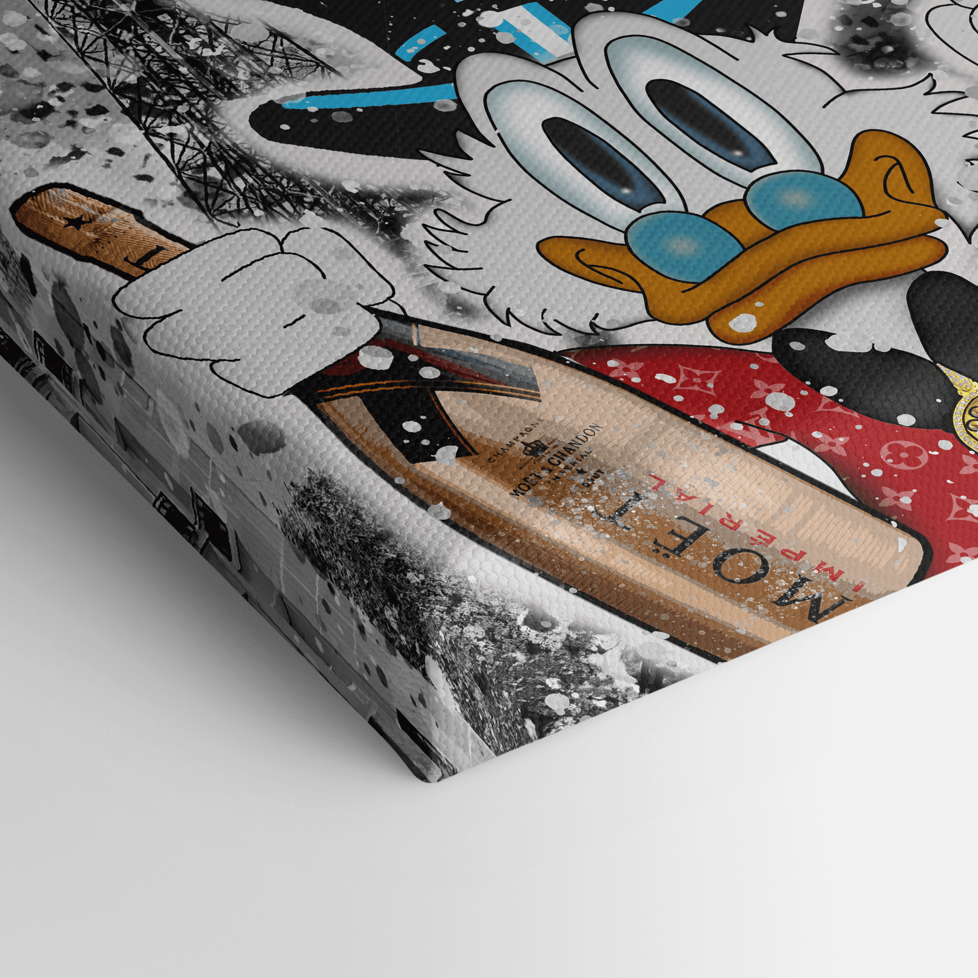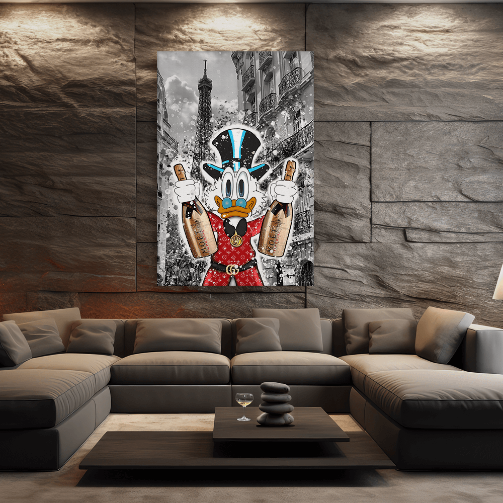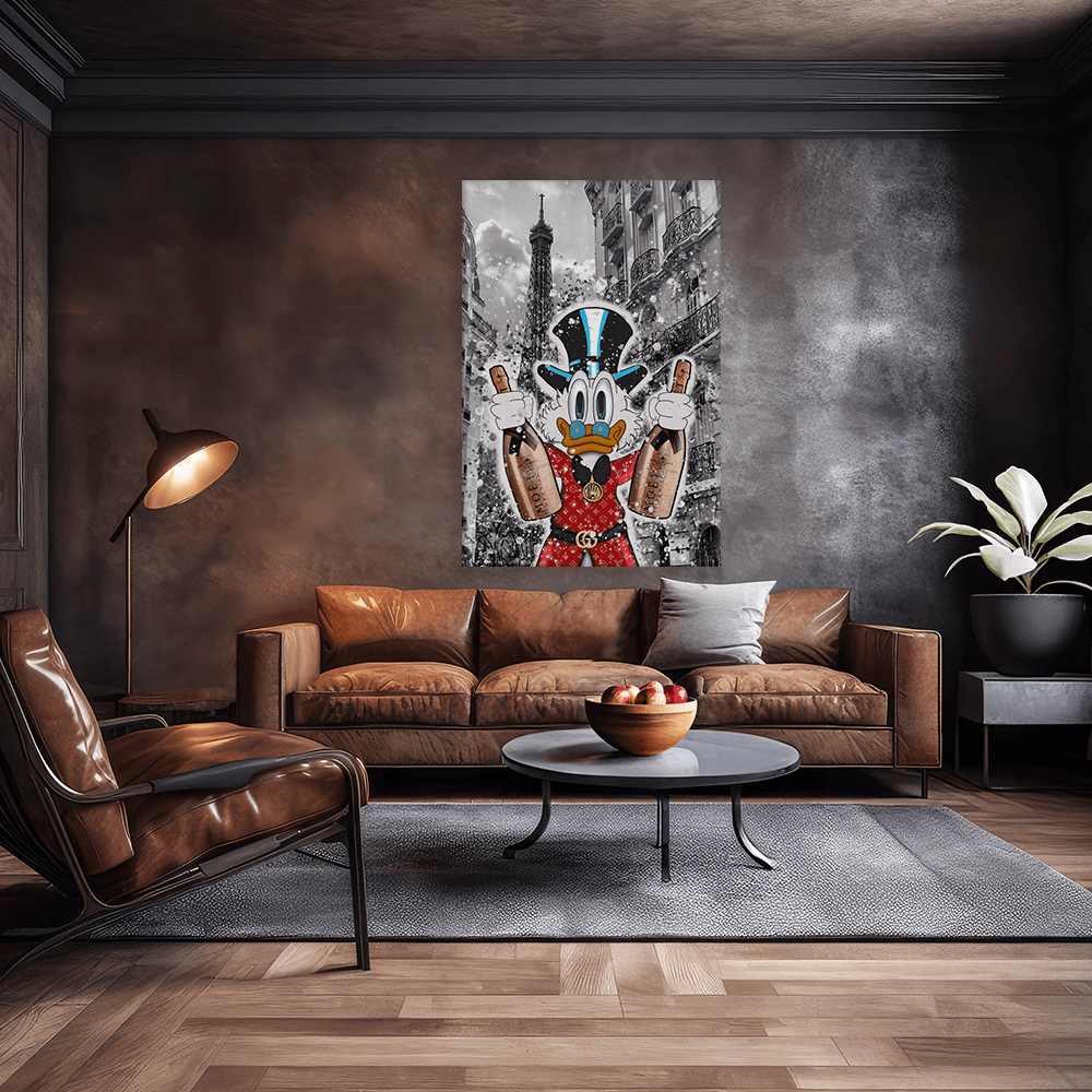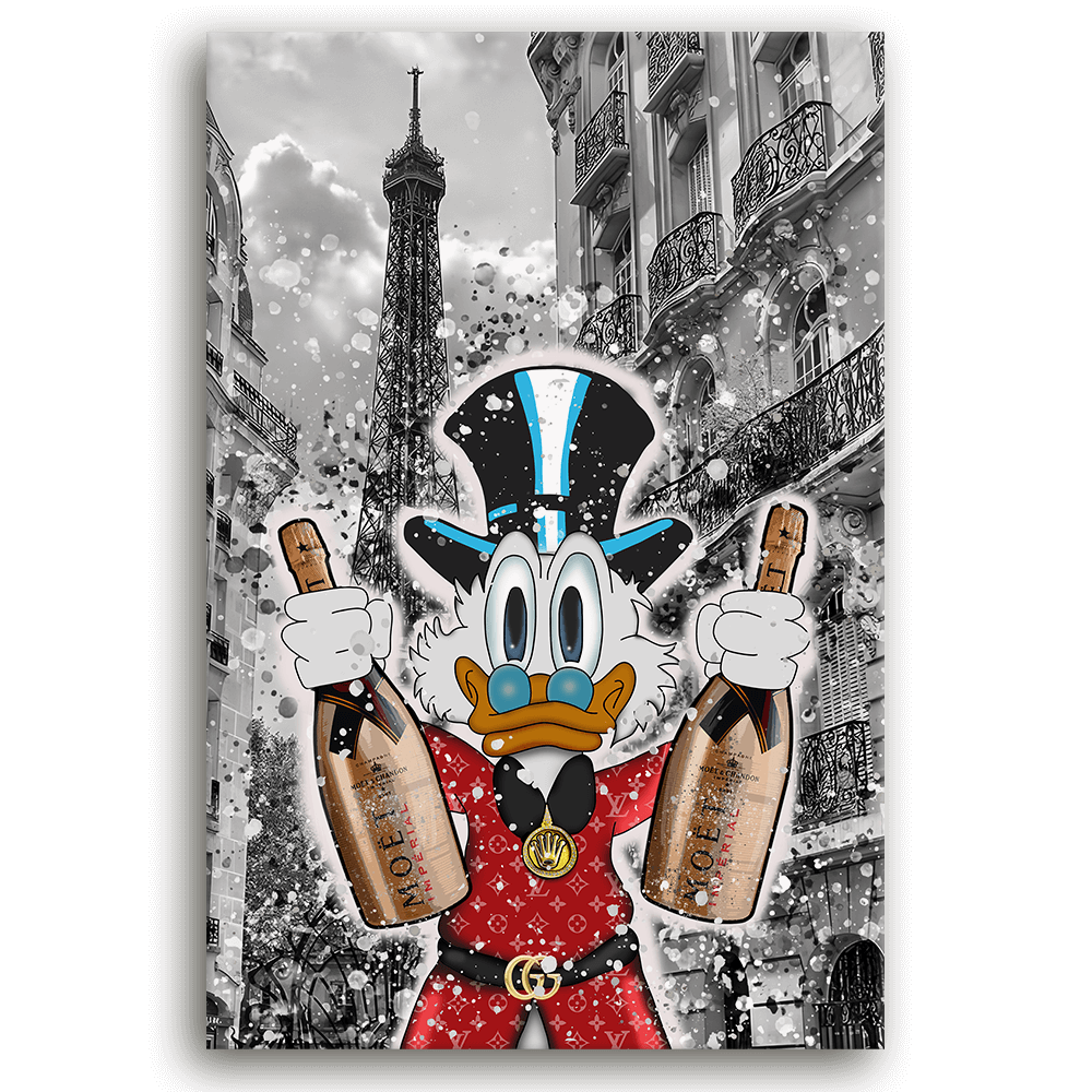 Das Leinwandbild Leinwandbild - DAGOBERT IN PARISüberzeugt mit matter Oberfläche und wird auf hochwertigem Canvas-Material (260 g/m²) im Eco-Solvent-Druck gefertigt. Der Druck in 1440 dpi sorgt für brillante Details und langlebige Farben mit hoher UV-Beständigkeit. Anschließend wird die Leinwand auf einen 2 cm starken Holzrahmen gespannt, die Ecken professionell umgeschlagen und das Leinwandbild Leinwandbild - DAGOBERT IN PARIS so fertig montiert geliefert – direkt zum Aufhängen ohne weiteres Zubehör.