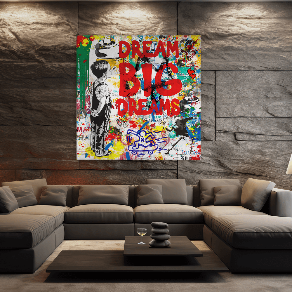 Hol dir Leinwandbild - Dream big Dreams - Banksy inspired und bringe urbane Eleganz in dein Zuhause!