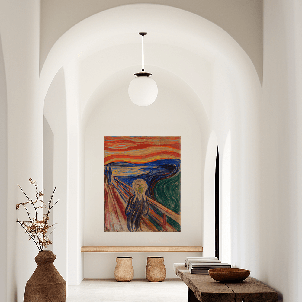 Das Leinwandbild Leinwandbild - Edvard Munch - Der Schreiüberzeugt mit matter Oberfläche und wird auf hochwertigem Canvas-Material (260 g/m²) im Eco-Solvent-Druck gefertigt. Der Druck in 1440 dpi sorgt für brillante Details und langlebige Farben mit hoher UV-Beständigkeit. Anschließend wird die Leinwand auf einen 2 cm starken Holzrahmen gespannt, die Ecken professionell umgeschlagen und das Leinwandbild Leinwandbild - Edvard Munch - Der Schrei so fertig montiert geliefert – direkt zum Aufhängen ohne weiteres Zubehör.