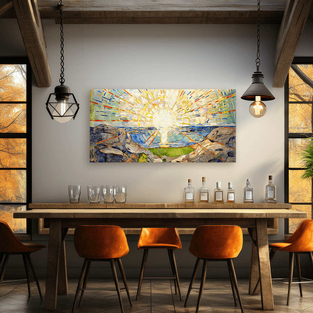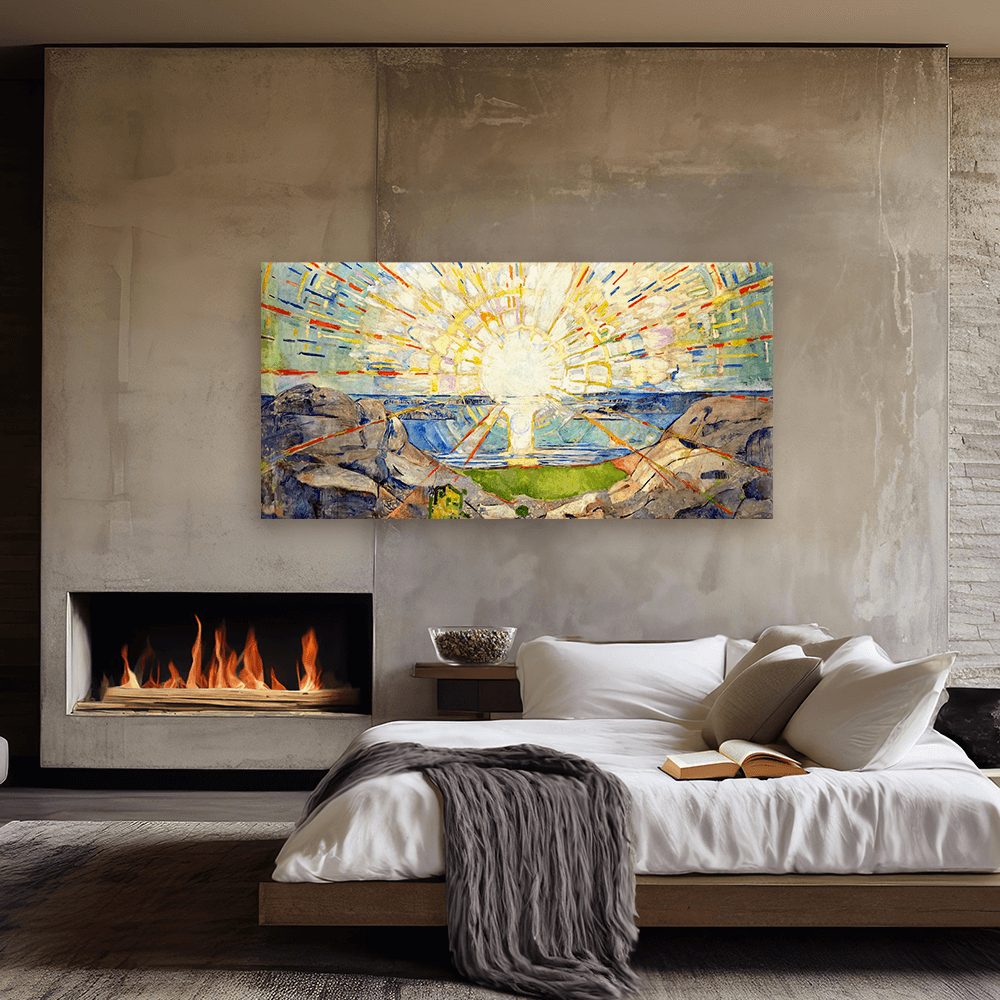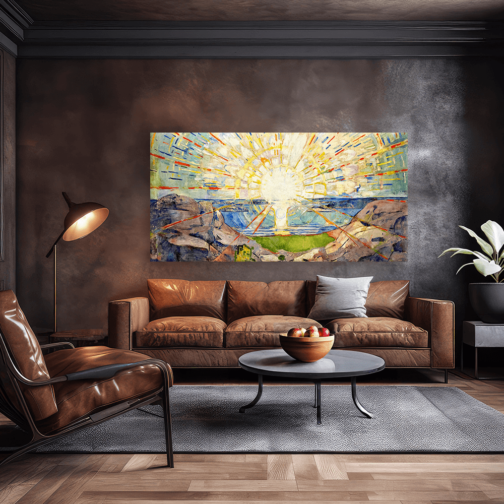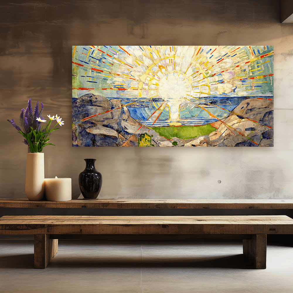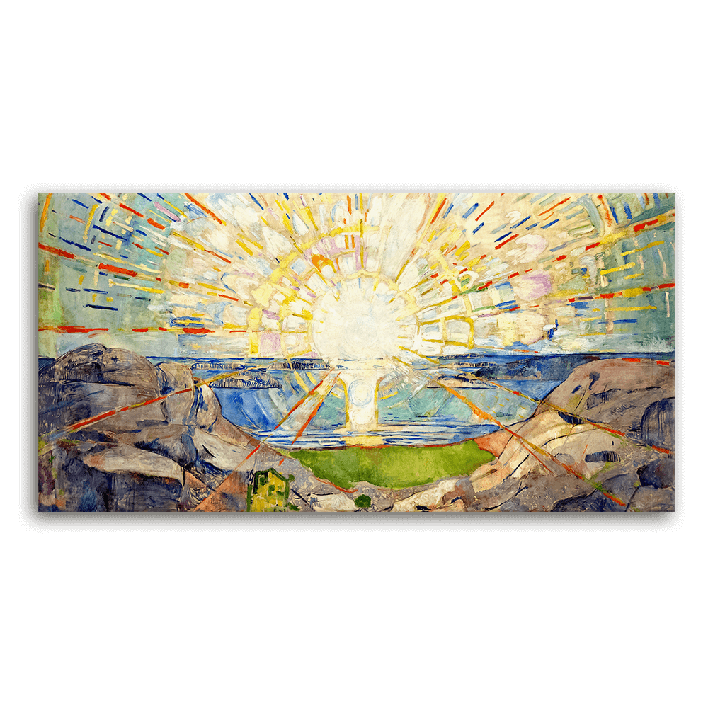 Das Leinwandbild Leinwandbild - Edvard Munch - Die Sonne 1911überzeugt mit matter Oberfläche und wird auf hochwertigem Canvas-Material (260 g/m²) im Eco-Solvent-Druck gefertigt. Der Druck in 1440 dpi sorgt für brillante Details und langlebige Farben mit hoher UV-Beständigkeit. Anschließend wird die Leinwand auf einen 2 cm starken Holzrahmen gespannt, die Ecken professionell umgeschlagen und das Leinwandbild Leinwandbild - Edvard Munch - Die Sonne 1911 so fertig montiert geliefert – direkt zum Aufhängen ohne weiteres Zubehör.