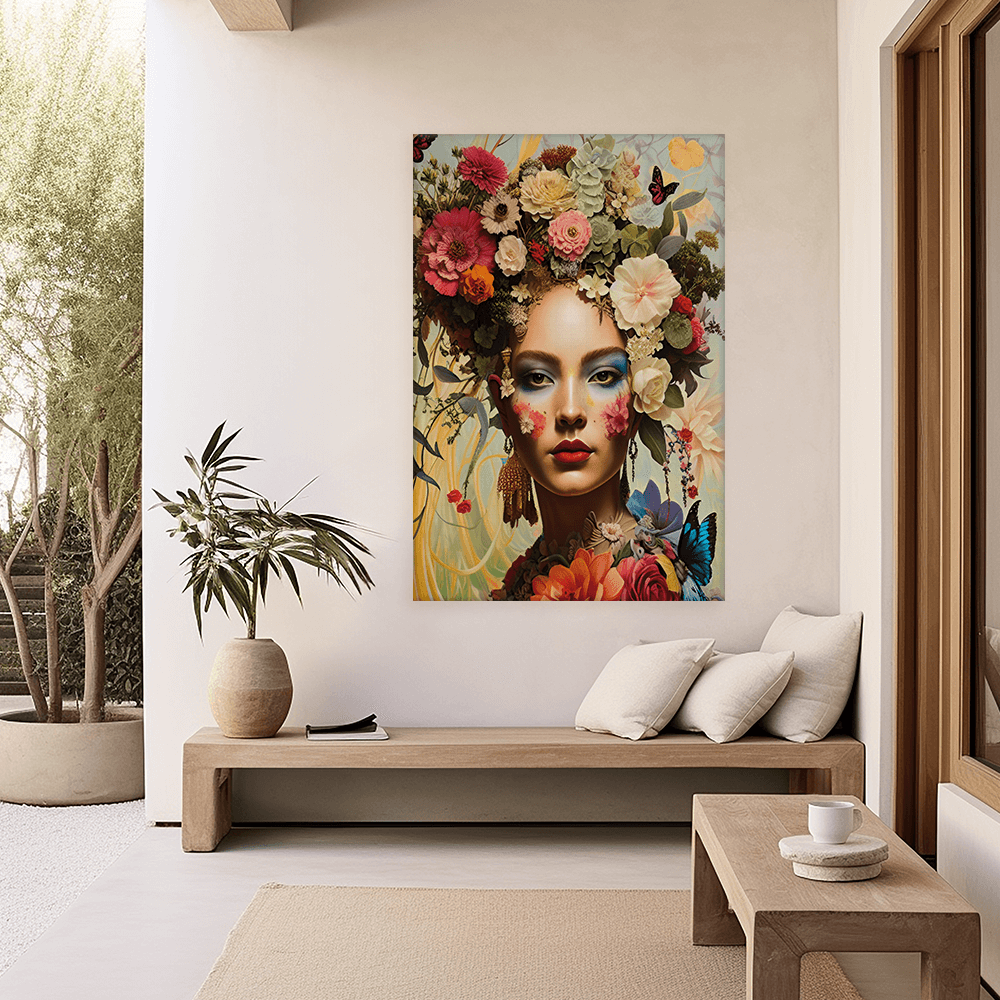 Das Leinwandbild Leinwandbild - Frau Baila Blumenhaarüberzeugt mit matter Oberfläche und wird auf hochwertigem Canvas-Material (260 g/m²) im Eco-Solvent-Druck gefertigt. Der Druck in 1440 dpi sorgt für brillante Details und langlebige Farben mit hoher UV-Beständigkeit. Anschließend wird die Leinwand auf einen 2 cm starken Holzrahmen gespannt, die Ecken professionell umgeschlagen und das Leinwandbild Leinwandbild - Frau Baila Blumenhaar so fertig montiert geliefert – direkt zum Aufhängen ohne weiteres Zubehör.