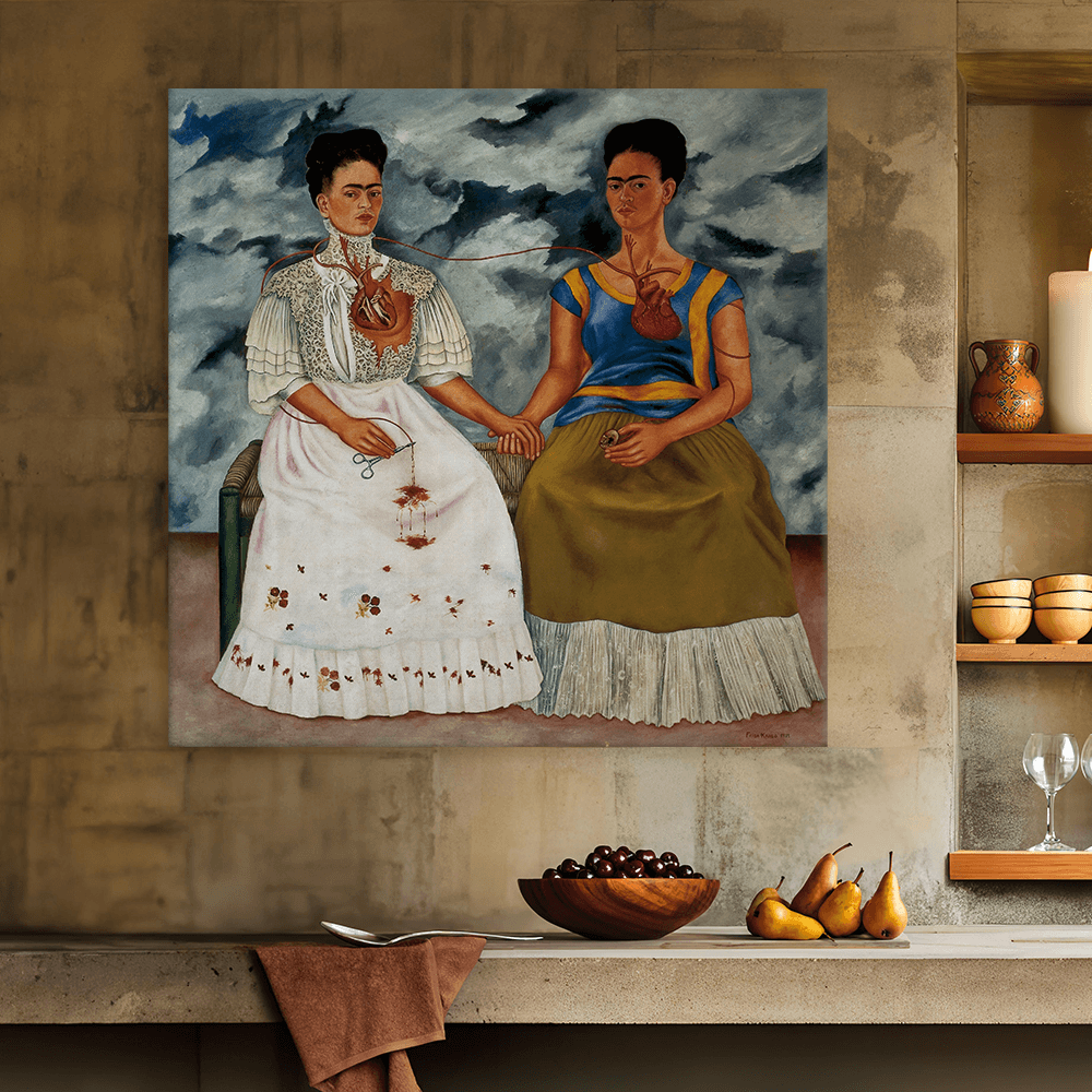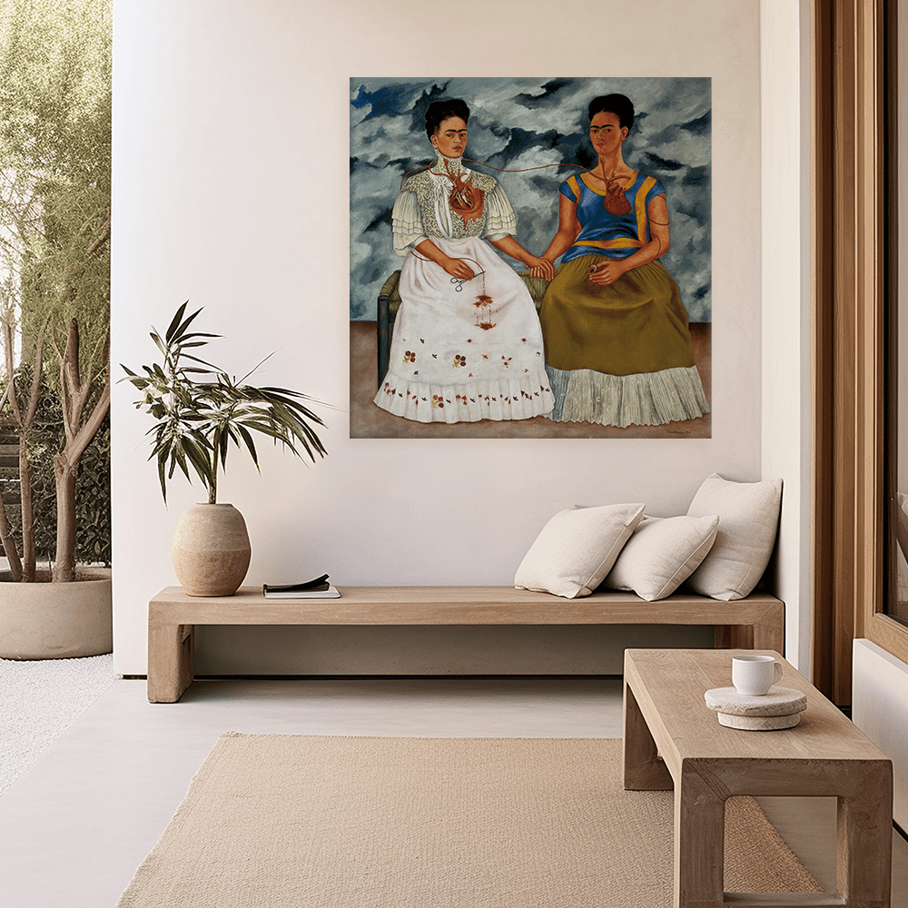 Das Leinwandbild Leinwandbild - Frida Kahlo - The Two Fridasüberzeugt mit matter Oberfläche und wird auf hochwertigem Canvas-Material (260 g/m²) im Eco-Solvent-Druck gefertigt. Der Druck in 1440 dpi sorgt für brillante Details und langlebige Farben mit hoher UV-Beständigkeit. Anschließend wird die Leinwand auf einen 2 cm starken Holzrahmen gespannt, die Ecken professionell umgeschlagen und das Leinwandbild Leinwandbild - Frida Kahlo - The Two Fridas so fertig montiert geliefert – direkt zum Aufhängen ohne weiteres Zubehör.