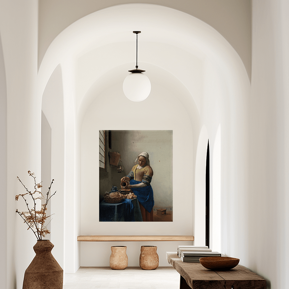 Das Leinwandbild Leinwandbild - Johannes Vermeer - Die Milchmagtüberzeugt mit matter Oberfläche und wird auf hochwertigem Canvas-Material (260 g/m²) im Eco-Solvent-Druck gefertigt. Der Druck in 1440 dpi sorgt für brillante Details und langlebige Farben mit hoher UV-Beständigkeit. Anschließend wird die Leinwand auf einen 2 cm starken Holzrahmen gespannt, die Ecken professionell umgeschlagen und das Leinwandbild Leinwandbild - Johannes Vermeer - Die Milchmagt so fertig montiert geliefert – direkt zum Aufhängen ohne weiteres Zubehör.