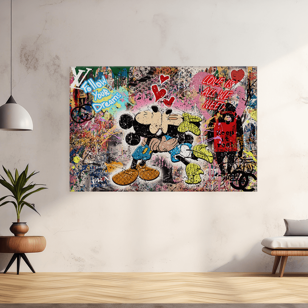 Leinwandbild - MICKEY MEETS BANKSY - LOVE IS ALL WE NEED No. 3