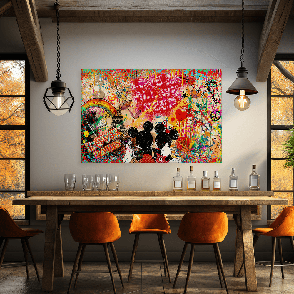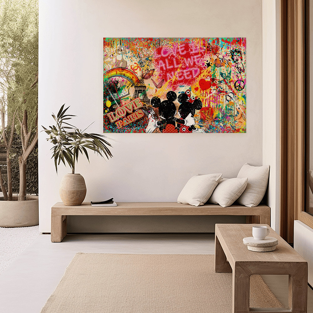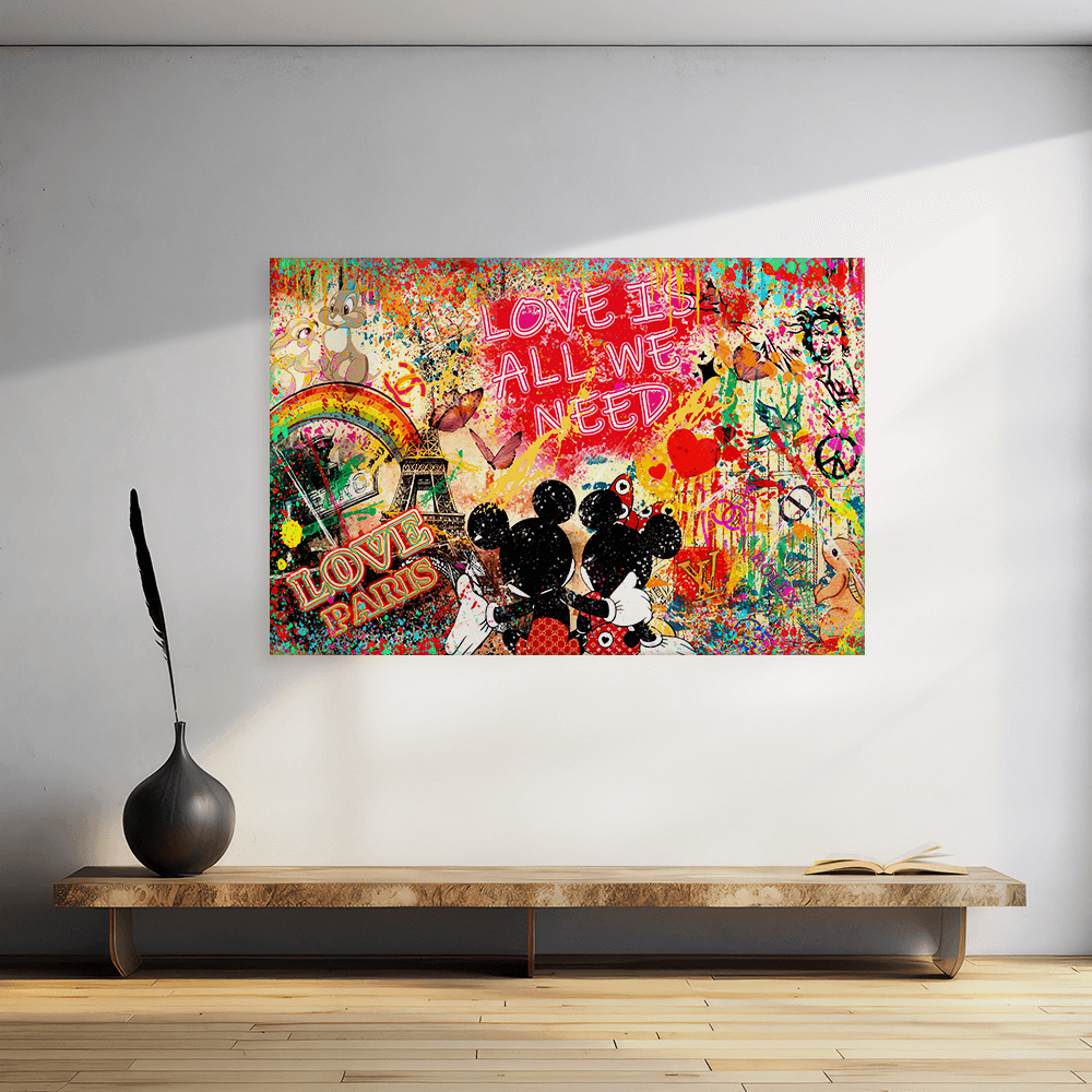 Leinwandbild - MICKEY MEETS BANKSY - LOVE IS ALL WE NEED No. 4