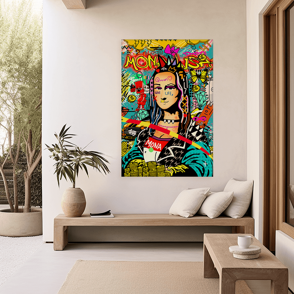 Das Leinwandbild Leinwandbild - MONA LISA POP ARTüberzeugt mit matter Oberfläche und wird auf hochwertigem Canvas-Material (260 g/m²) im Eco-Solvent-Druck gefertigt. Der Druck in 1440 dpi sorgt für brillante Details und langlebige Farben mit hoher UV-Beständigkeit. Anschließend wird die Leinwand auf einen 2 cm starken Holzrahmen gespannt, die Ecken professionell umgeschlagen und das Leinwandbild Leinwandbild - MONA LISA POP ART so fertig montiert geliefert – direkt zum Aufhängen ohne weiteres Zubehör.