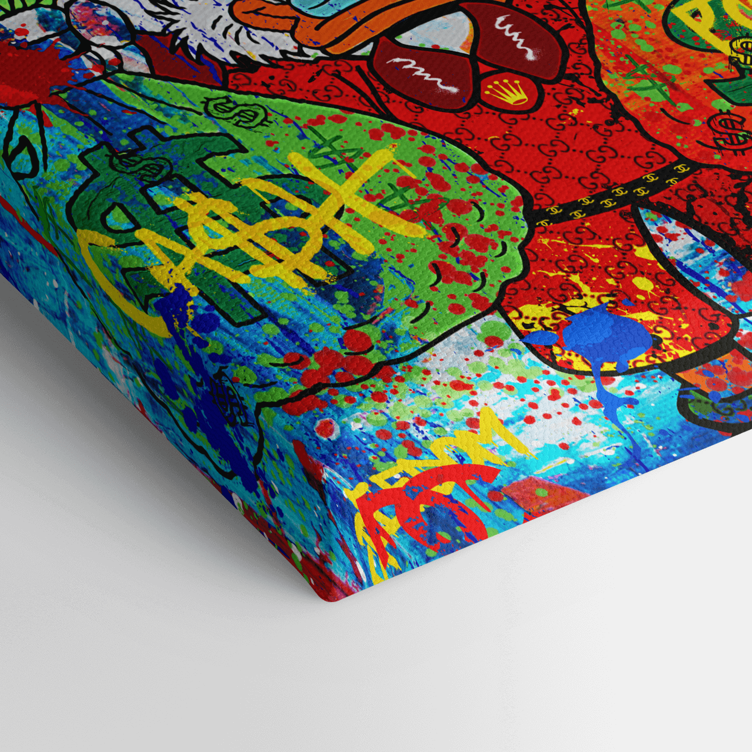 Das Leinwandbild Leinwandbild - DAGOBERT MONEY RULES THE WORLD No. 1überzeugt mit matter Oberfläche und wird auf hochwertigem Canvas-Material (260 g/m²) im Eco-Solvent-Druck gefertigt. Der Druck in 1440 dpi sorgt für brillante Details und langlebige Farben mit hoher UV-Beständigkeit. Anschließend wird die Leinwand auf einen 2 cm starken Holzrahmen gespannt, die Ecken professionell umgeschlagen und das Leinwandbild Leinwandbild - DAGOBERT MONEY RULES THE WORLD No. 1 so fertig montiert geliefert – direkt zum Aufhängen ohne weiteres Zubehör.