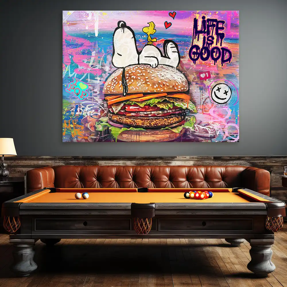 Das Leinwandbild Leinwandbild - Snoopi - Live Is Good fängt den einzigartigen Stil von Grace-Berlin perfekt ein. Gedruckt mit modernster Technik in 1440 dpi bietet das Kunstwerk eine außergewöhnliche Farbintensität und Bildschärfe. Die UV-beständigen Farben sorgen dafür, dass dein Bild auch bei direkter Lichteinstrahlung dauerhaft strahlt. Das Motiv wird über die Seitenkanten gespiegelt, was einen harmonischen Galerie-Effekt erzeugt und dem Bild eine stilvolle 3D-Wirkung verleiht.