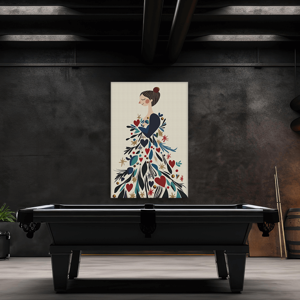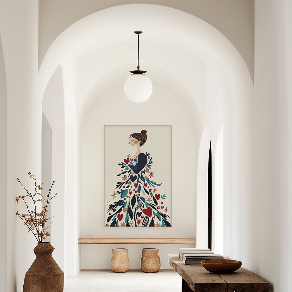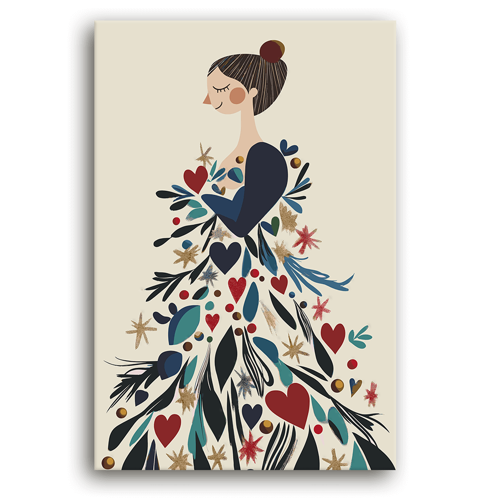 Das Leinwandbild Leinwandbild - The Christmas Dressüberzeugt mit matter Oberfläche und wird auf hochwertigem Canvas-Material (260 g/m²) im Eco-Solvent-Druck gefertigt. Der Druck in 1440 dpi sorgt für brillante Details und langlebige Farben mit hoher UV-Beständigkeit. Anschließend wird die Leinwand auf einen 2 cm starken Holzrahmen gespannt, die Ecken professionell umgeschlagen und das Leinwandbild Leinwandbild - The Christmas Dress so fertig montiert geliefert – direkt zum Aufhängen ohne weiteres Zubehör.