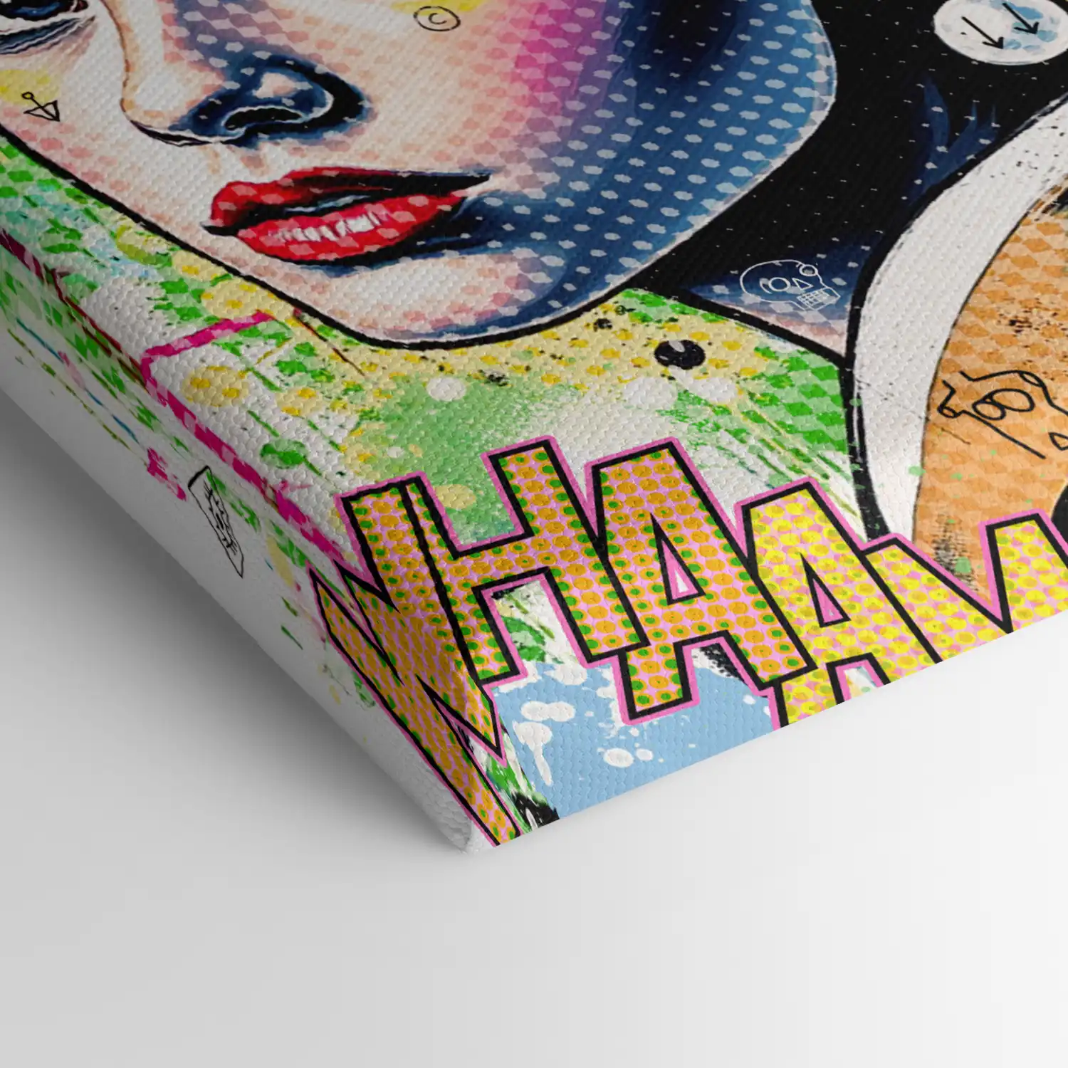 Das Leinwandbild Leinwandbild - Vermeer Reloaded - The Pop Girl With The Earringüberzeugt mit matter Oberfläche und wird auf hochwertigem Canvas-Material (260 g/m²) im Eco-Solvent-Druck gefertigt. Der Druck in 1440 dpi sorgt für brillante Details und langlebige Farben mit hoher UV-Beständigkeit. Anschließend wird die Leinwand auf einen 2 cm starken Holzrahmen gespannt, die Ecken professionell umgeschlagen und das Leinwandbild Leinwandbild - Vermeer Reloaded - The Pop Girl With The Earring so fertig montiert geliefert – direkt zum Aufhängen ohne weiteres Zubehör.