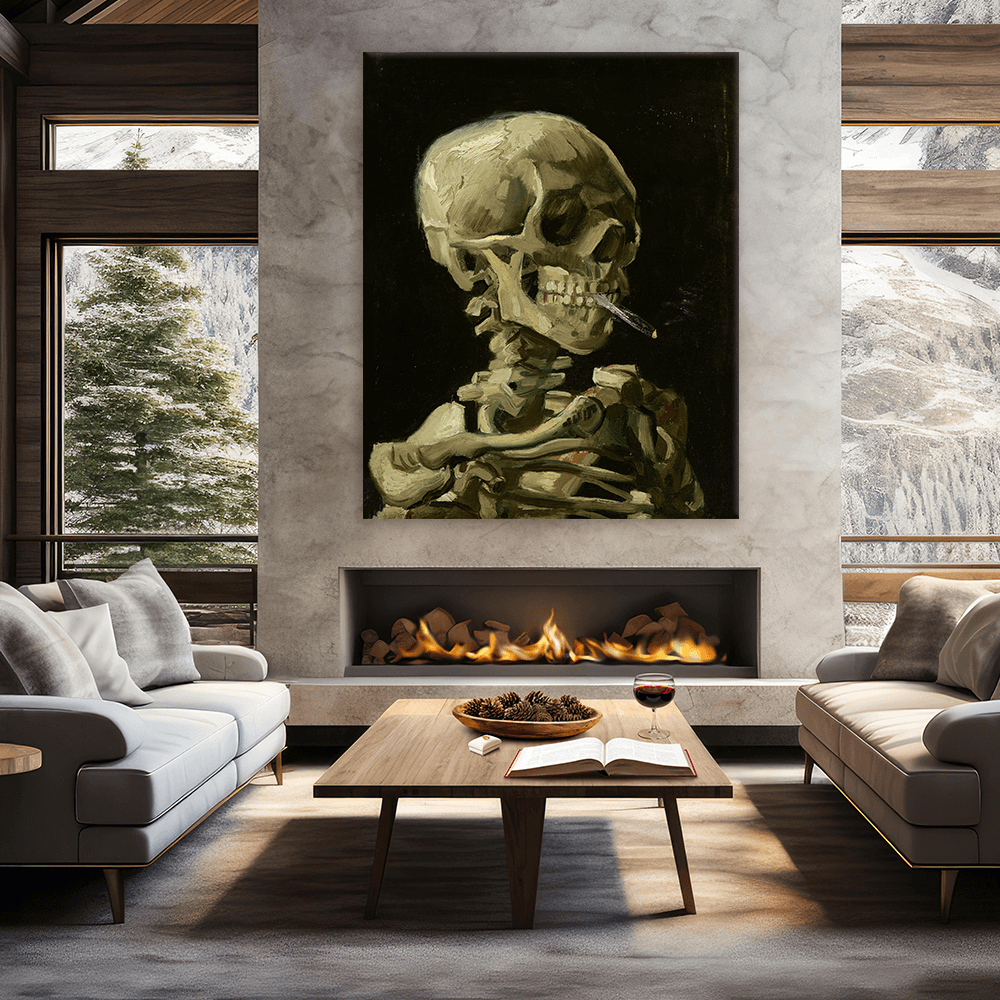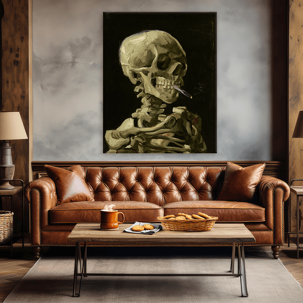 Leinwandbild - Vincent van Gogh - Schädel mit brennender Zigarette
