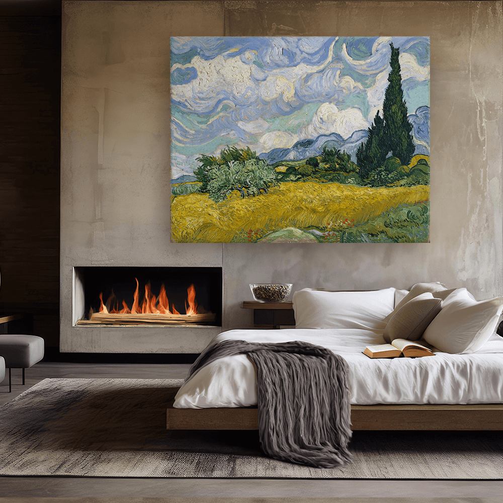 Leinwandbild - Vincent van Gogh - Weizenfeld mit Zypressen