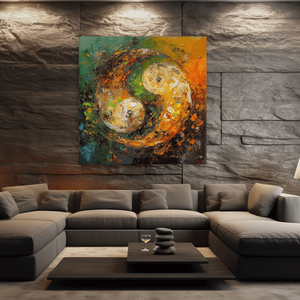 Das Leinwandbild Leinwandbild - YIN YANG ABSTRAKTüberzeugt mit matter Oberfläche und wird auf hochwertigem Canvas-Material (260 g/m²) im Eco-Solvent-Druck gefertigt. Der Druck in 1440 dpi sorgt für brillante Details und langlebige Farben mit hoher UV-Beständigkeit. Anschließend wird die Leinwand auf einen 2 cm starken Holzrahmen gespannt, die Ecken professionell umgeschlagen und das Leinwandbild Leinwandbild - YIN YANG ABSTRAKT so fertig montiert geliefert – direkt zum Aufhängen ohne weiteres Zubehör.